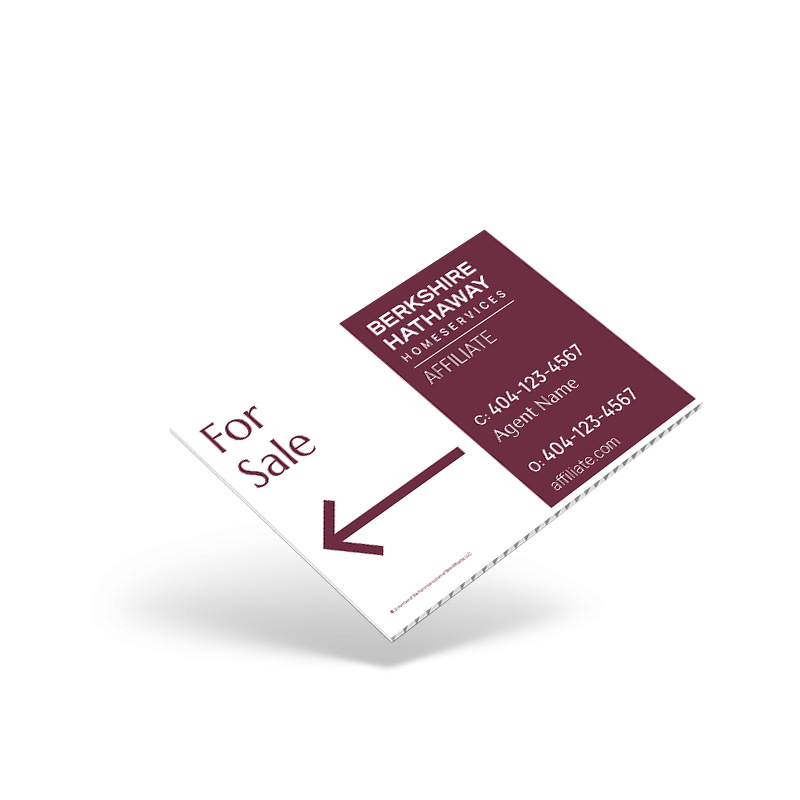 Promote your listings with the BHHS Affiliate 18" x 12" Custom Coroplast Sign Panel—perfect for real estate professionals seeking durable, lightweight signage. Designed for outdoor use, this weather-resistant panel is made from corrugated plastic (Coroplast), offering exceptional versatility and long-lasting performance. Fully customizable with your branding, logo, and messaging, it's ideal for directional signs, open house promotions, or property-specific details. The compact 18" x 12" size ensures easy placement on yards, stakes, or frames without overwhelming the space. Whether used alone or as a rider, this two-sided sign panel delivers professional visibility for BHHS Affiliate agents in any real estate market.