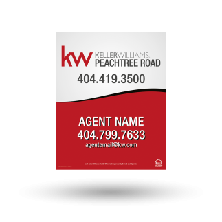 This 24" x 30" styrene yard sign, designed for Keller Williams Peachtree Road, comes in two impactful versions to elevate your property marketing. The standard model features a durable, weather-resistant styrene construction with a two-sided design, ensuring visibility from all directions. It’s mounted on a sleek black powder-coated stand, offering a professional and stable display.