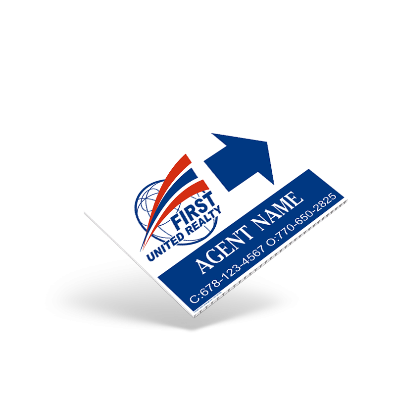 The First United Realty Estate Starter Package offers everything you need to professionally showcase your listings. This comprehensive set includes a durable 24" x 30" yard sign, expertly designed for high visibility and weather resistance. Complementing the main sign are directional signs to guide potential buyers, sturdy stands for secure placement, and versatile clip-ons to display additional information. Ideal for real estate professionals, this package provides a polished and cohesive branding solution for your properties. Easy to assemble and built to last, the Estate Starter Package ensures your marketing materials stand out and leave a lasting impression on prospective buyers.
