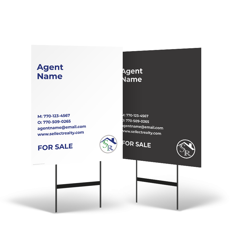 Launch your real estate marketing with the Sellect Realty Starter Package, designed to equip new agents with essential signage tools. This package includes a high-quality 24"x30" two-sided yard sign panel, durable directional signs for increased visibility, sturdy step stake stands for easy placement, and versatile clip-on riders to highlight listing features. Built to withstand the elements, each component offers professional branding and long-lasting performance. Ideal for open houses or new listings, this all-in-one signage solution ensures you’re ready to make a strong first impression. Boost your visibility and brand recognition in the field with the Sellect Realty Starter Package.