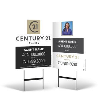 Boost your real estate presence with the 24"x30" Two-Sided Reflective/Non-Reflective Styrene Yard Sign on a Black Stand for Century 21 Results. Designed for durability and visibility, this weather-resistant styrene sign ensures your listings stand out, day or night. Choose between reflective or non-reflective options to enhance readability in any lighting condition. The double-sided design maximizes exposure, making it easy for potential buyers to spot your property details from multiple directions. Mounted on a sturdy black stand, this professional-grade yard sign is ideal for open houses, listings, and directional signage, helping you attract more buyers effortlessly.